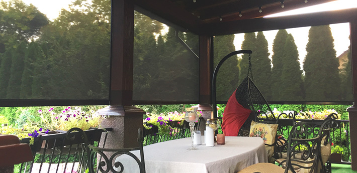 Полотно имеет фактор открытости 5%, благодаря чему практически не продувается. Хорошо рассеивает даже очень яркий солнечный свет, создавая мягкое освещение и обеспечивая комфорт для глаз. А снаружи вы будете полностью защищены от посторонних глаз.